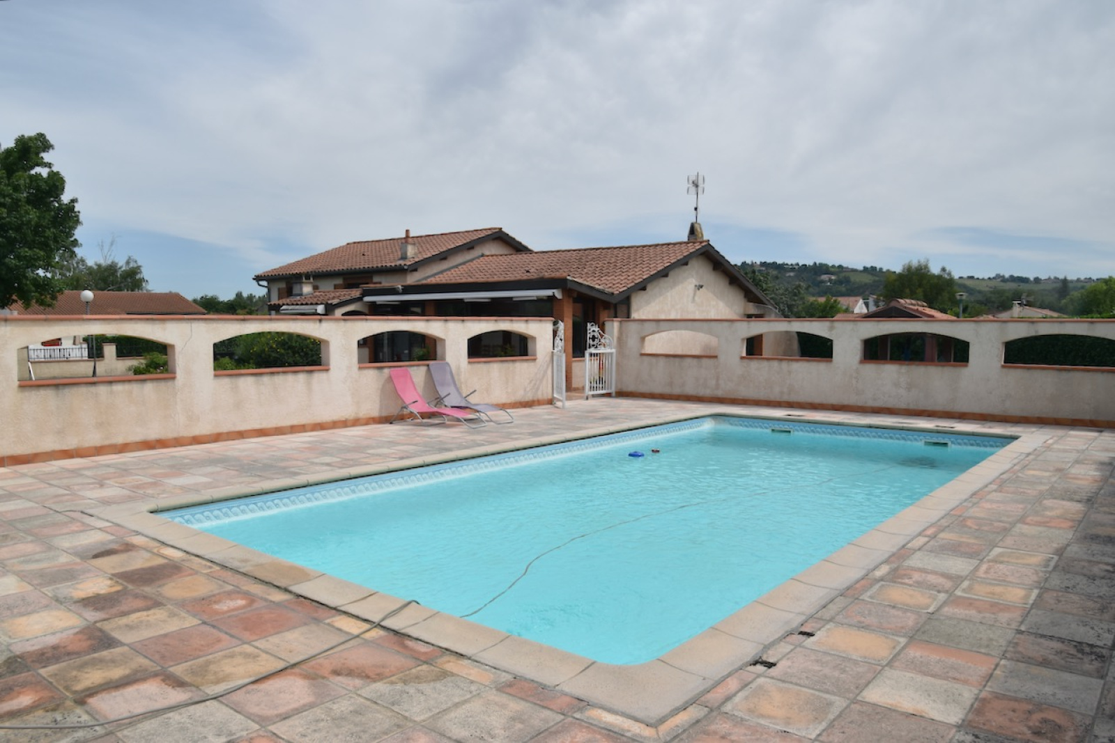 PINS JUSTARET - Ne manquez cette agréable Maison T4 de 135 m2 sur un terrain de 1500 m2. Elle est composée d'une entrée, d'une Cuisine équipée séparée de 15 m2, d'un espace Séjour / Salon traversant avec cheminée de 38 m2, de 3 chambres avec placards, d'une salle de bains spacieuse de 10 m2 et d'un Wc séparé. La Cuisine et le Séjour donnent sur une Véranda de 28 m2. La Maison dispose d'un demi-sous/sol de plus de 60 m2 avec garage, buanderie, salle de jeux... Les fenêtres sont en PVC double vitrage avec volets PVC et Alu de 2013, l'isolation des combles date de 2016, le chauffage et l'eau chaude sont produits par une chaudière gaz individuelle de 2018. La Maison bénéficie d'un jardin arboré et fleuri avec de beaux espaces et d'une piscine de 10X5. Elle est située au calme dans un lotissement à 10 mn de la rocade de TOULOUSE. Communes à proximité : PINSAGUEL - PORTET SUR GARONNE - ROQUETTES - ROQUES - VILLENEUVE TOLOSANE - CUGNAUX. Pour toute information complémentaire ou pour organiser une visite, contactez le 06 24 43 23 55 ou le 06.70.00.68.60.