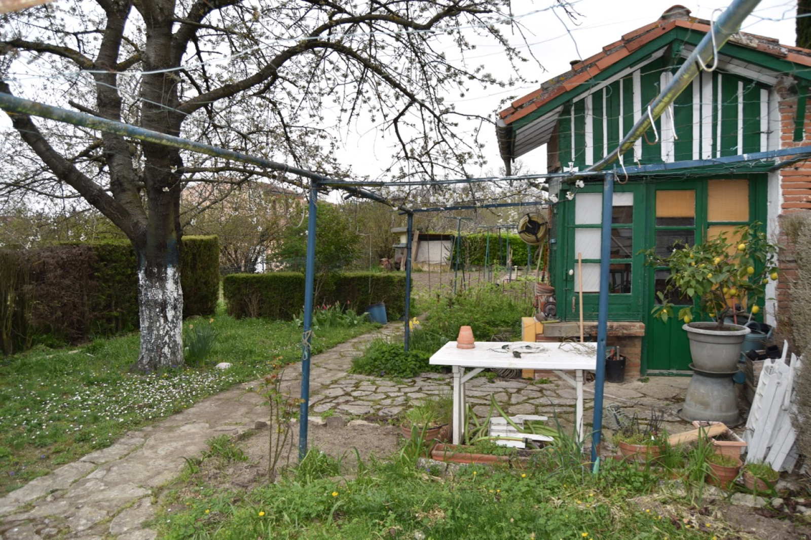 TOULOUSE - POUVOURVILLE - Maison de ville de 140 m², mitoyenne d'un côté, sur trois niveaux. Elle est composée au RDC d'une Cuisine, d'un Salon avec cheminée et d'une Salle à manger. Au premier étage il y a trois chambres, une salle de bains et un Wc. Au troisième niveau, il y a un grenier dont une partie de la superficie est supérieure à 1,80 m . La maison est à rénover. Un terrain de 290 m² avec une petite dépendance complète la maison.